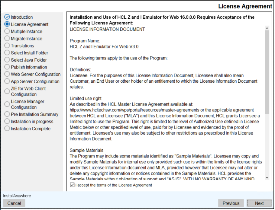 - Once the InstallAnywhere is ready, the HCL Z and I Emulator for Web window appears.