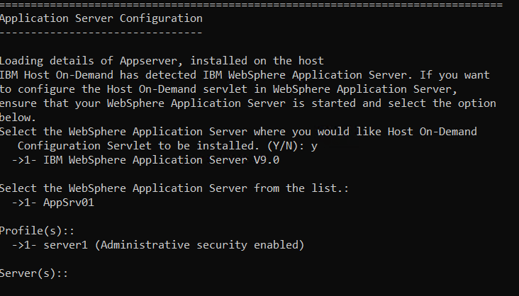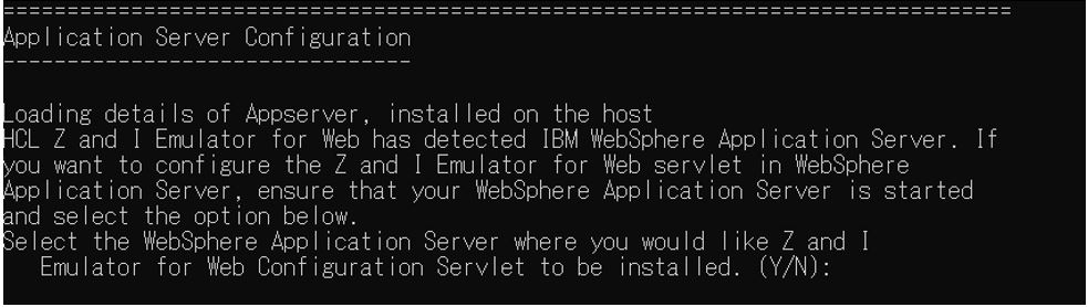 - Type "Y" to configure the WebSphere Application Server.
