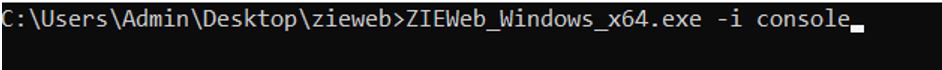 - Type Builds>ZIE for Web_Windows_x64.exe -i console in the Command Line to