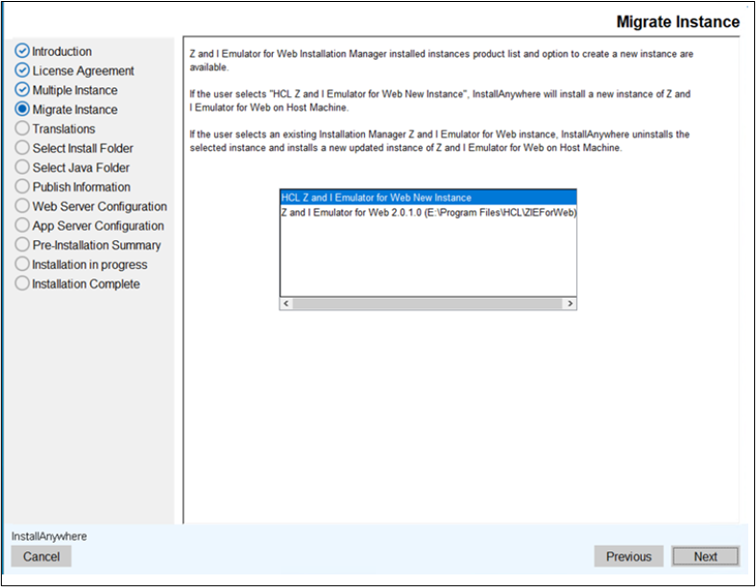 - HCL Z and I Emulator for Web v3.0 search the installed HCL Z and I Emulator for Web and displays on Migrate installation Dialog.