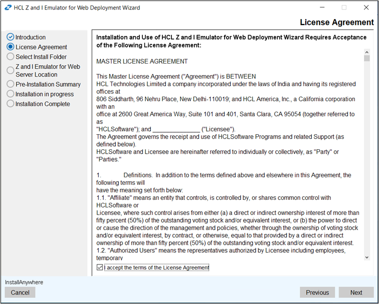 - The License Agreement screen appears. Click the I accept the terms of the
