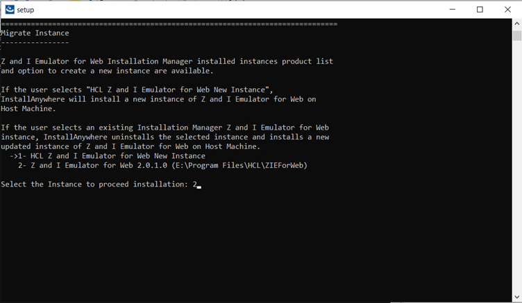 list. If the user choose "HCL Z and I Emulator for Web New Instance," it is installed as