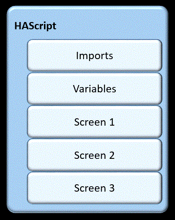 <HAScript> エレメントは、マクロ・スクリプトのマスター・エレメントです。(HAScript は、Host Access Script を意味します。) このエレメントは、マクロ全体を囲み、その開始タグには、マクロ全体に適用できる情報 (例えば、マクロの名前) を含む属性が入っています。<HAScript> エレメントの例については、サンプル <HAScript> エレメント を参照してください。