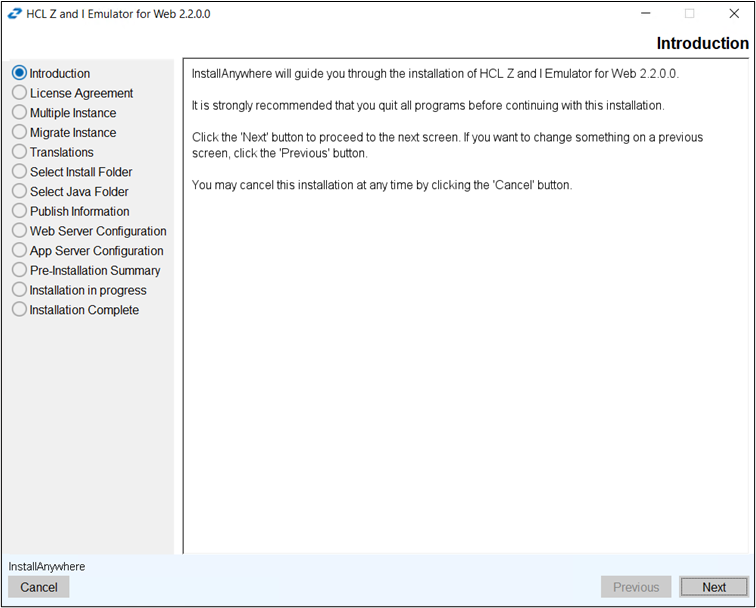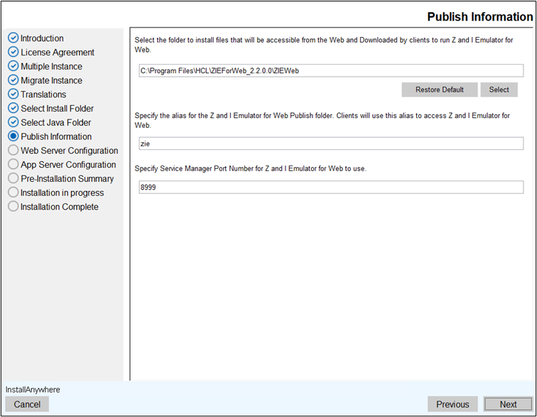 Instance. Click Next. Note: For more information refer to Migrate Installation for Z and I Emulator for Web