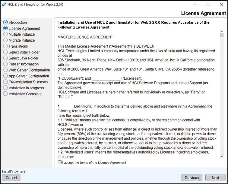 - The License Agreement screen displays. Click I accept the items of the License