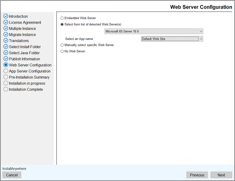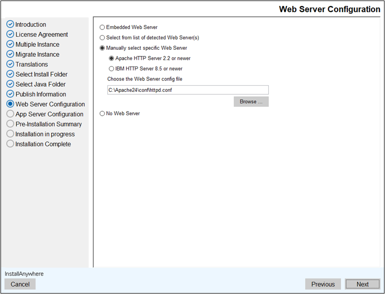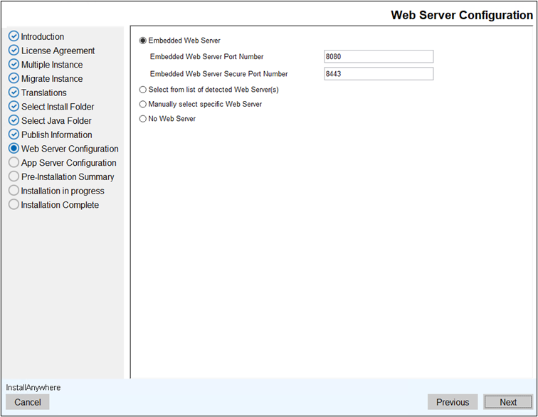 - Click Next. The Web Server Configuration screen displays.
