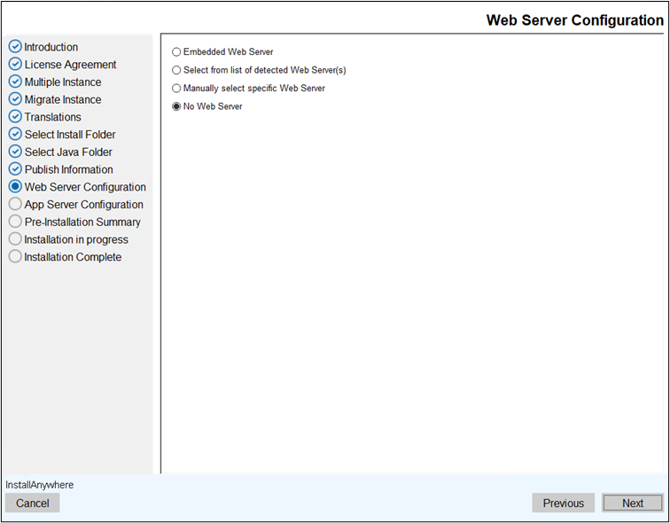 - No Web Server: when web server is configured manually by the user.