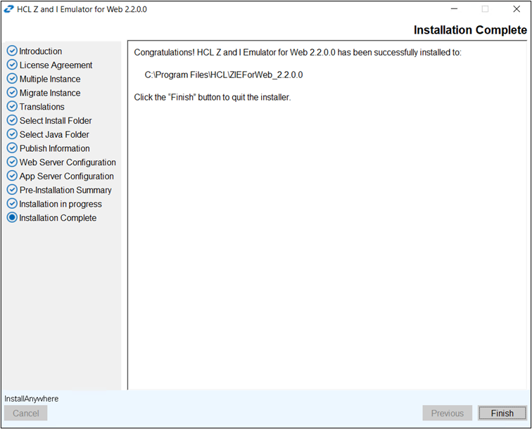- Click Finish. To ensure the install is completed successfully, you can take the following additional actions: