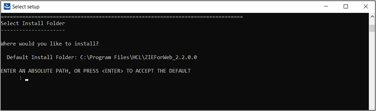 Choose Install Folder configuration to install the product screen displays. (Here, the user can choose the customized folder).