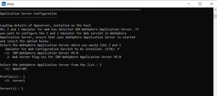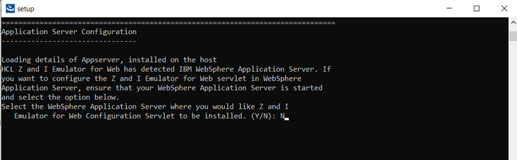 - Select the WebSphere Application Server when you would like Z and I Emulator for Web Configuration Servlet to be