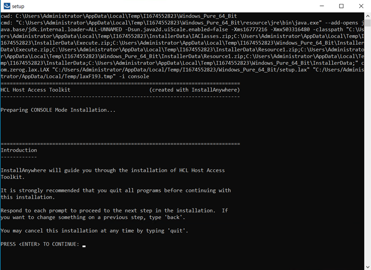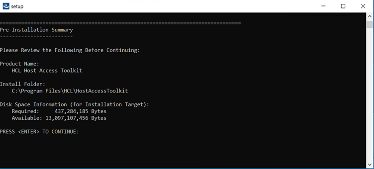 Note: It supports from feature release of HCL Z and I Emulator for Web v2.1.0. - Translation to install screen displays.