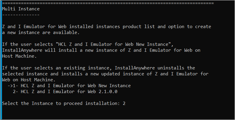 - Z and I Emulator for Web Version 3.0 supports multiple instances, suppose user wants to install latest release as separate product whichever version is already installed needs to select "Z and I Emulator for Web New Instance" in multiple instance dialog and provide different installation path and port to configure as multiple instance installation.