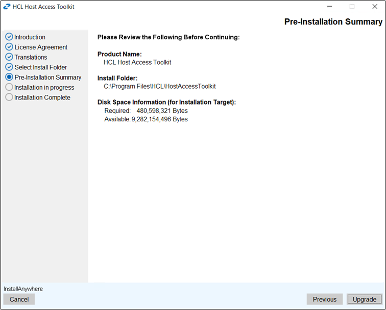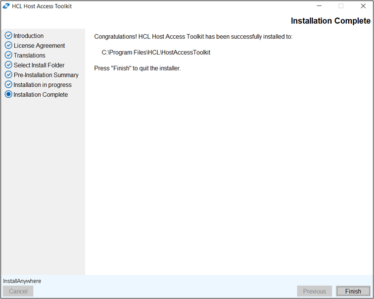 Note: During an upgrade, the installer uninstalls the existing version and installs the latest version. - After successful upgradation, the Install Complete screen appears.