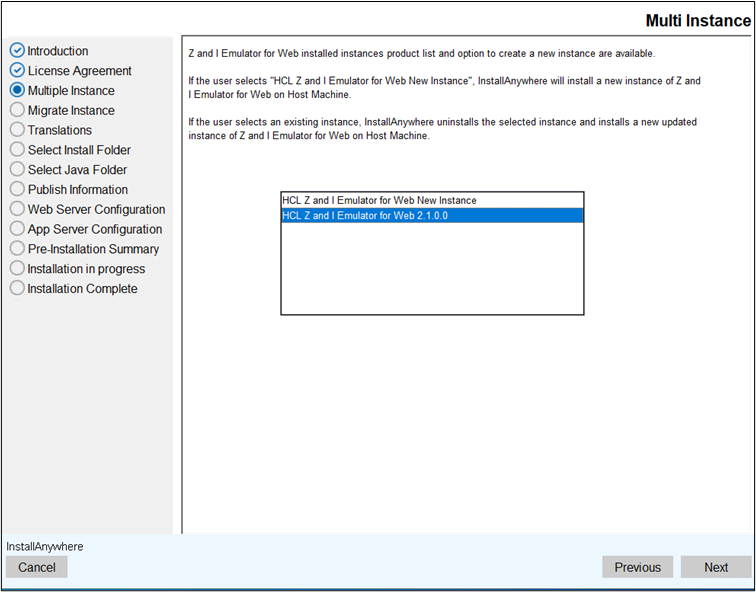 - Z and I Emulator for Web Version 3.0 search the previous installed release of Z and I Emulator for Web v3.0 and displays on Multiple Instance dialog.