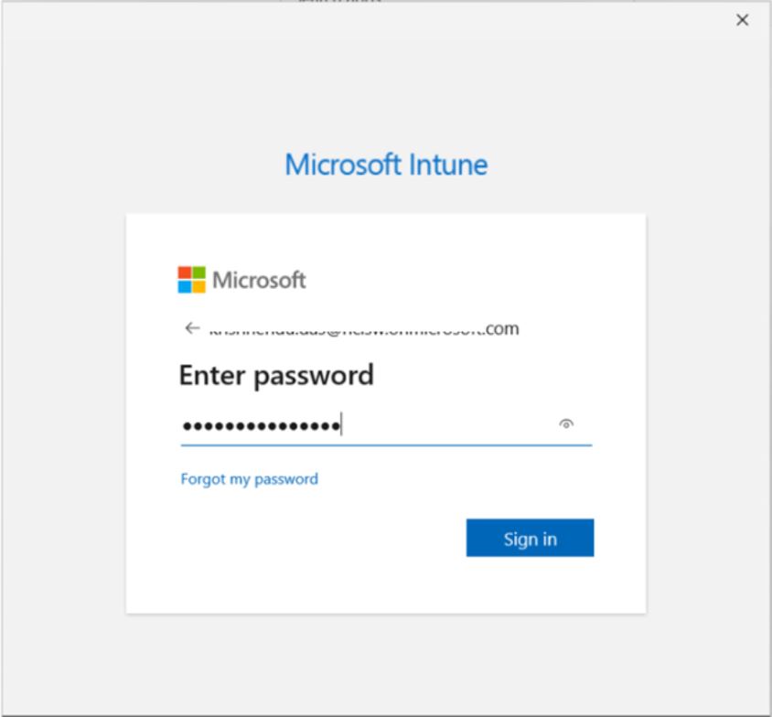 - A Microsoft Intune sign-in pop-up is displayed from the Company Portal. Sign in to