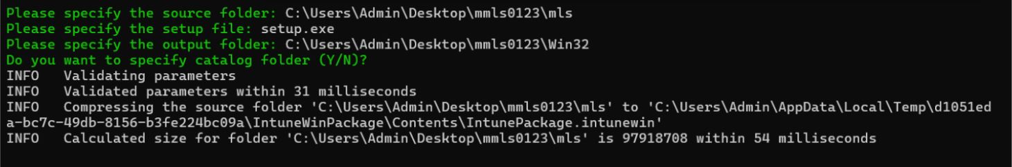 After the process completes, the Setup.exe.intunewin file is generated in the output folder.
