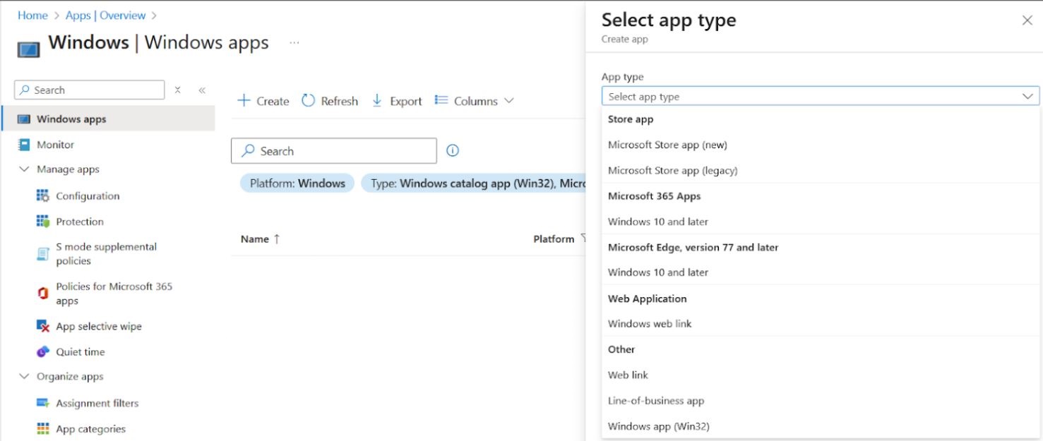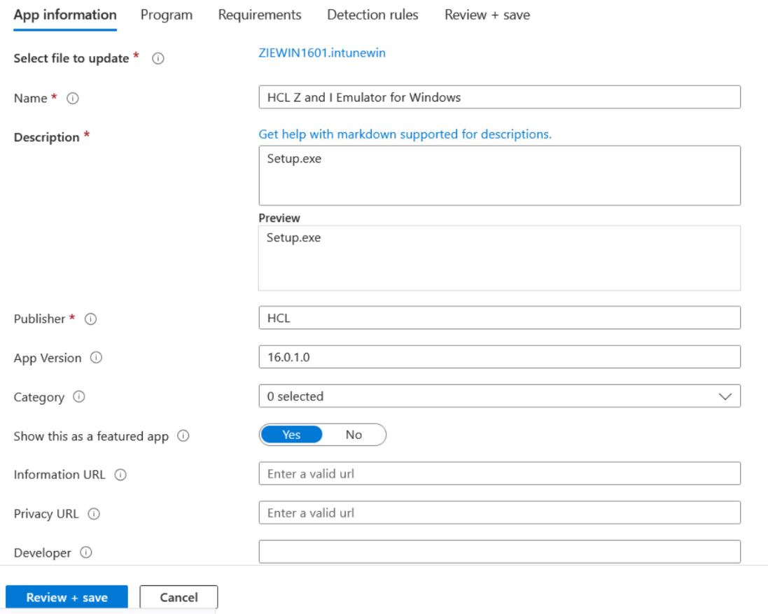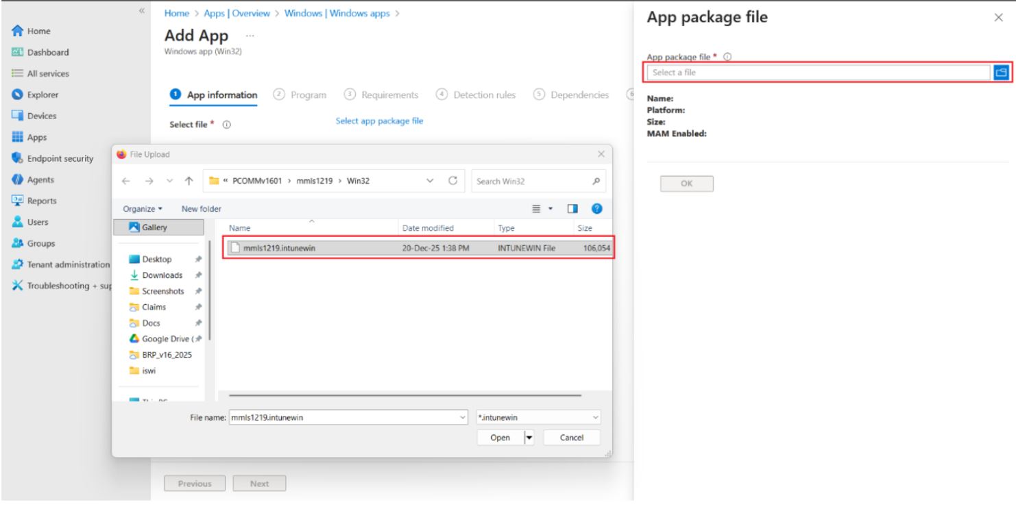 .intunewin file by following the steps described earlier.Create the application as follows: