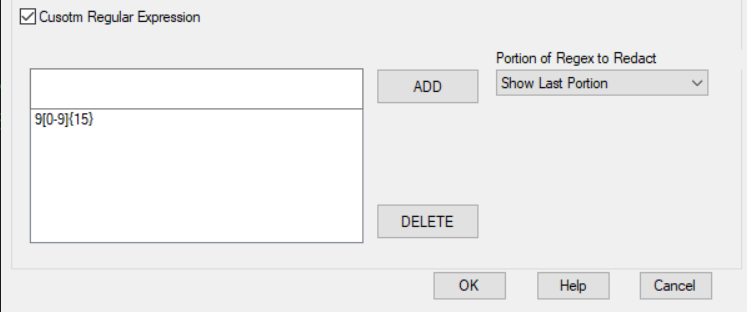 - Show Last Portion: If the number of digits in the regex is less than or equal to eight, the last two digits will be displayed, and the rest will be redacted. If the number of digits in the regex is more than eight, the last four digits will be displayed, and the rest will be redacted.
