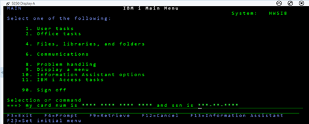 The Z and I Emulator for Windows supports the data masking feature, which protects sensitive information such as card numbers by masking the information as per the configurations. The data masking protects the original data from exposure during non-production activities such as software testing, user training, and data analysis.