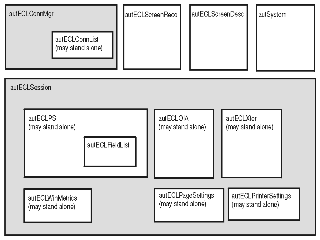 Host Access Class Library Automation Objects 是 autECL 对象的图形表示: