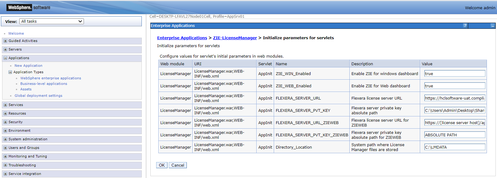 4.c 在许可证管理器应用程序中配置 HCL 许可证服务器详细信息(通过任何受支持的应用程序服务器)