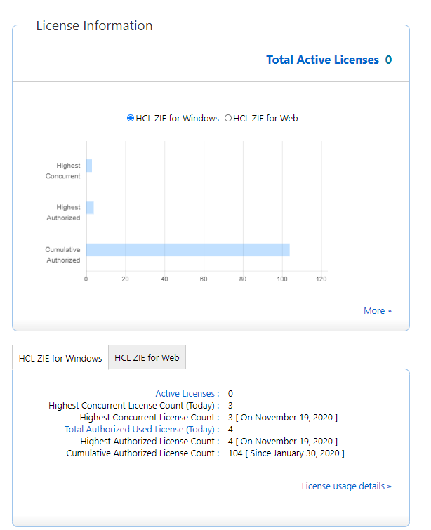 直接 HCL 许可:ZIEWin 与“HCL 许可证服务器”或“HCL 通用本地许可证服务器”(CLLS)通信以进行许可。