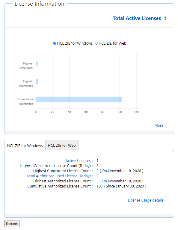 配置完成后,从浏览器启动 HCL ZIE 许可证管理器。