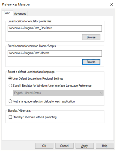 Un utilisateur peut configurer le répertoire de profil avec OneDrive de deux manières : soit pendant l'installation de Z and I Emulator for Windows à l'aide de la variable %OneDrive%, soit après l'installation via l'utilitaire Préférences.