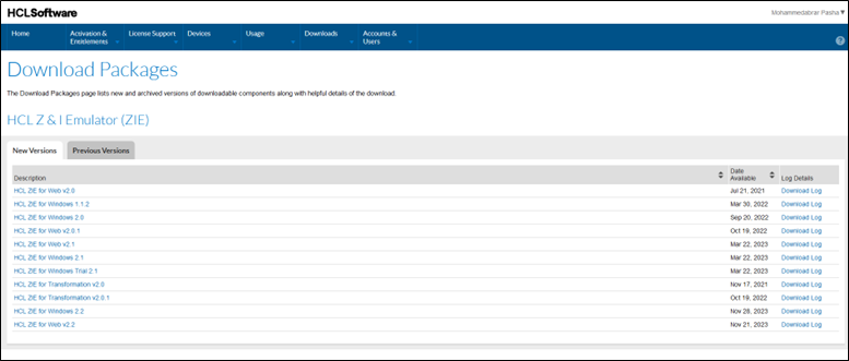 - Sélectionnez HCL Z & I Emulator (ZIE) dans la liste des produits.