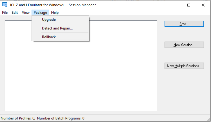 - Après la mise à niveau réussie, pour revenir à la version précédente, cliquez sur l'élément de menu « Rollback » dans le menu « Package » du gestionnaire de sessions (en ligne/hors ligne).